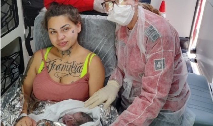 Com o auxílio de um familiar deu a luz. Os bombeiros voluntários de Jaguaruna, que havian sido acionados chegaram ao local, chegaram instantes após o nascimento..