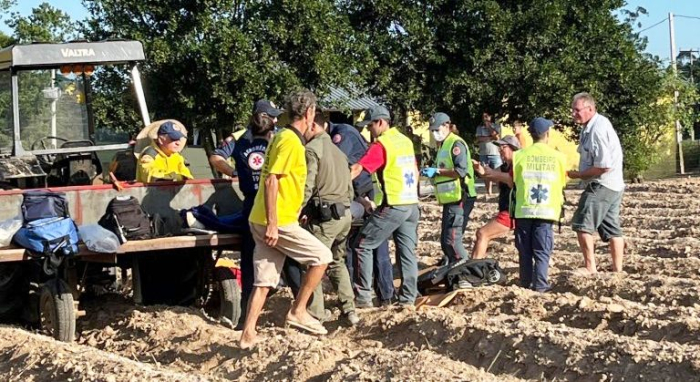 De acordo com o Corpo de Bombeiros Militar, a vítima teve a mão e o antebraço direitos presos em uma adubadeira acoplada a um trator. Quando as equipes chegaram ao local, ela estava em pé, consciente e orientada, mas apresentava fratura exposta e uma extensa laceração no braço. Para conter a hemorragia, foi necessário o uso de torniquete.