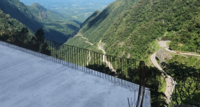 A Secretaria de Estado da Infraestrutura e Mobilidade (SIE) projeta que o trânsito volte a circular em pista inteira no mês de fevereiro. Para conseguir estabilizar o solo, uma estrutura em concreto precisou ser erguida no local e, com isso, a Serra do Rio do Rastro ganhará um novo ponto de observação.