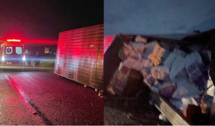 A carga de papéis higiênicos e fraldas ficou espalhada às margens da rodovia, próxima ao Bairro Quarta Linha.