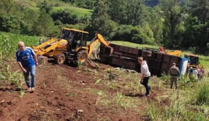 Ônibus com universitários levava estudantes de Paisagismo a uma visita técnica no cactário de Imigrante (RS) – Foto: BMRS Um ônibus com universitários da UFSM (Universidade Federal de Santa Maria) tombou na manhã desta sexta-feira, 04 de abril, e deixou pelo menos sete mortos na Estrada da Linha Berlim entre os municípios de Teutônia (RS) e Imigrante (RS), no Vale do Taquari, a aproximadamente 120 km de Porto Alegre.
