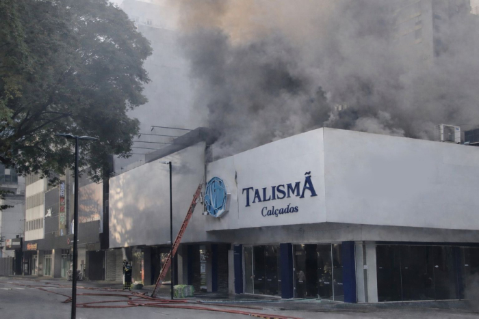 De acordo com as primeiras informações, quatro caminhões dos bombeiros foram empenhados no atendimento. O fogo atingiu um edifício onde fica localizada a loja Talismã Calçados, citada apenas como ponto de referência.