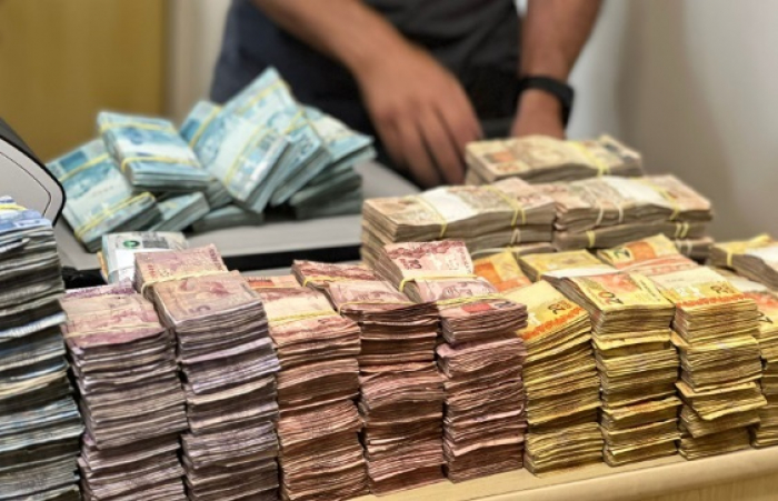 Ao desmontar a peça, encontram um compartimento com diversos maços de notas de real.