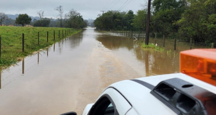 Conforme a nota, o alto volume de chuva ocasionou o extravasamento do Rio Urussanga, no trecho que dá acesso a comunidade de Rio Vargedo, no município de Treze de Maio.