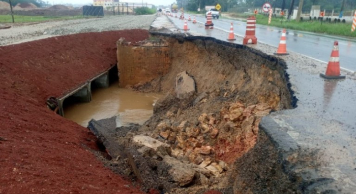 Rodovia é recuperada após abertura de cratera provocada por fortes chuvas