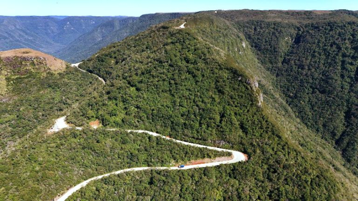 A obra na Serra do Faxinal faz parte do programa Estrada Boa, o maior projeto rodoviário da história de Santa Catarina.