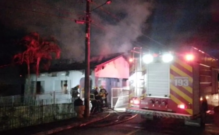 Foram utilizados cerca de 3,5 mil litros d’água para extinção das chamas - Foto: Divulgação Um incêndio deixou uma residência destruída em Lauro Müller na madrugada desta quarta-feira, 15 de janeiro.