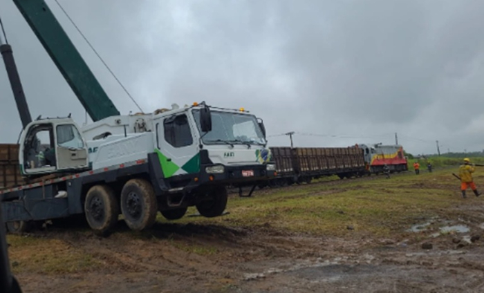 Desde a manhã de hoje, os técnicos da Ferrovia Tereza Cristina (FTC) e da empresa de guindastes atuam no local da ocorrência ferroviária para normalizar o tráfego e liberar o cruzamento rodoferroviário na Passagem em Nível (PN) do km 103+000 da linha tronco, na Rua Aristides Amboni.