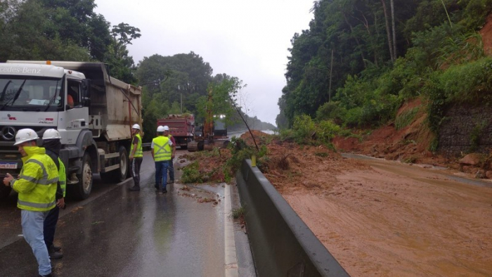 As equipes da concessionária Arteris Litoral Sul atuam no reparo do pavimento e limpeza da via no trecho afetado. Os serviços continuarão até a liberação de todas as faixas. A concessionária afirmou por meio de nota que segue monitorando o trecho e, se necessário, atuará em conjunto com a Polícia Rodoviária Federal (PRF) e Defesa Civil com restrições para garantir a segurança dos condutores.
