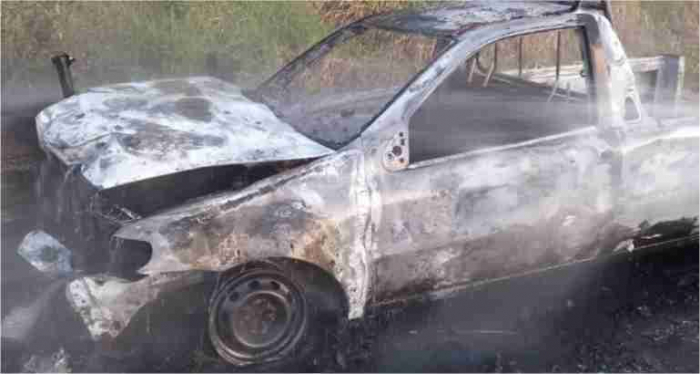 Picape ficou completamente destruída - Foto: Corpo de Bombeiros/Divulgação Uma picape Fiat Strada ficou destruída após pegar fogo na manhã deste domingo, dia 18, em Içara.Segundo informações do Corbo de Bombeiros, a ocorrência foi registrada por volta das 6h40, na ICR Antônio Daros, no Bairro Marili. O incêndio aconteceu depois que o veículo colidiu contra a cabeceira de uma ponte.