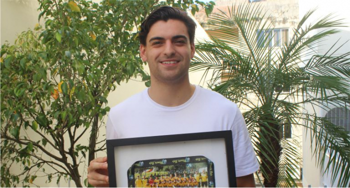 Ele está no décimo semestre e, unido ao esporte, consegue garantir uma remuneração para investir em livros, chuteiras e nos momentos de lazer.