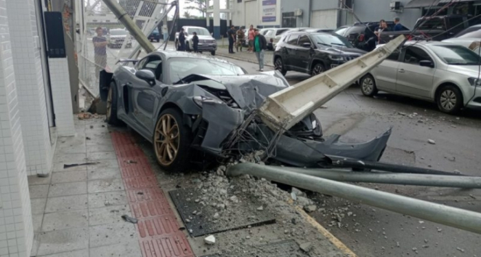 O motorista fugiu do local e não foi encontrado pela PM - Foto: Divulgação Um Porsche Cayman GT4 colidiu contra um poste no último sábado, 30 de setembro em Itapema. O carro avaliado em R$ 1 milhão ficou destruído. A Polícia Militar não localizou o motorista. Não houve feridos.