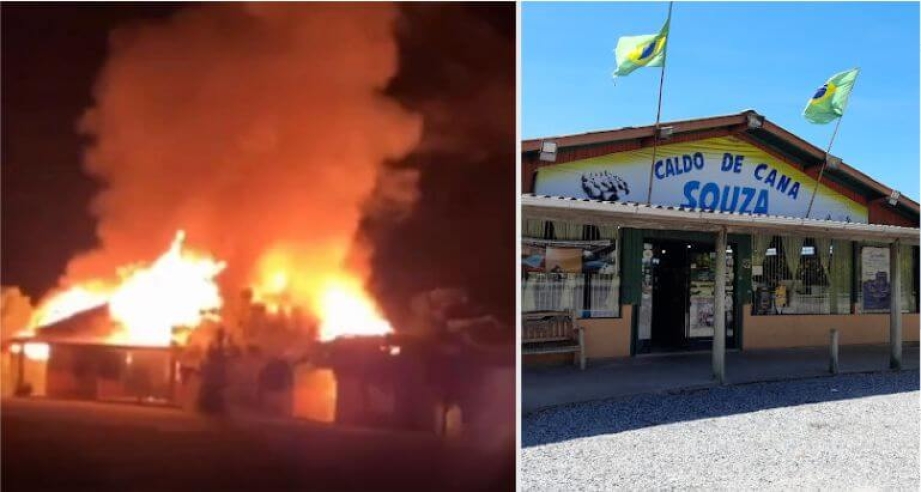 Foto: Redes Sociais/Reprodução Na noite da última segunda-feira, 23, um incêndio consumiu a estrutura do Caldo de Cana Souza. Imagens circulam nas redes sociais e mostram a intensidade das chamas.