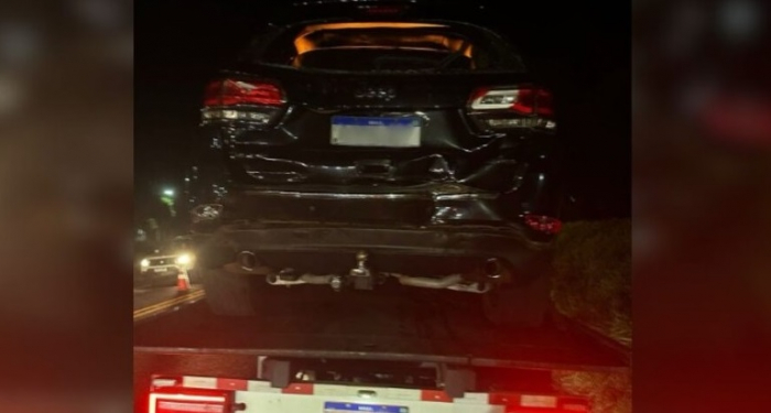 Jeep Cherokee ficou bastante danificado - Foto: Reprodução O deputado federal catarinense, Darci de Matos (PSD), se envolveu em um acidente com dois carros e um caminhão, na BR-277, entre Cascavel (PR) e Foz do Iguaçu (PR), na noite da última quinta-feira, 28 de março.