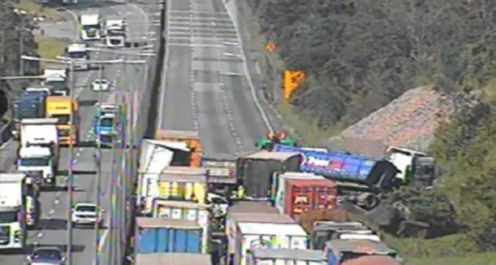 De acordo com a Arteris Litoral Sul, concessionária que administra a rodovia, a equipe atendeu a ocorrência, que envolveu quatro carros, uma carreta e dois caminhões.