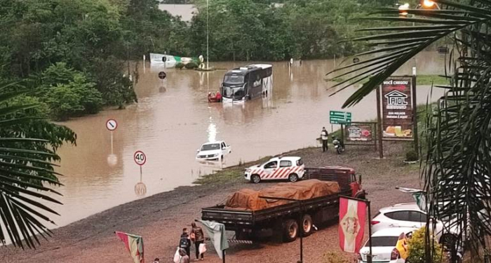 Não há previsão para liberação do trânsito no trecho - Foto: Divulgação A BR-470 está totalmente bloqueada na manhã desta sexta-feira, 17 de novembro, segundo informações da Polícia Rodoviária Federal. Fortes chuvas provocaram o alagamento total do trecho no KM 149, em Agronômica. Não há previsão para liberação do trânsito no local.