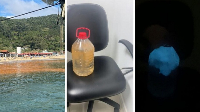 O fenômeno é o mesmo registrado na orla da Baía Sul, em Florianópolis, no começo desta semana. De acordo com o oceanógrafo do IMA, Carlos Eduardo Tibiriçá, testes de laboratório confirmaram ser florações de dinoflagelados, conhecidas como “maré vermelha”. O especialista gravou um vídeo mostrando a luminosidade da alga.