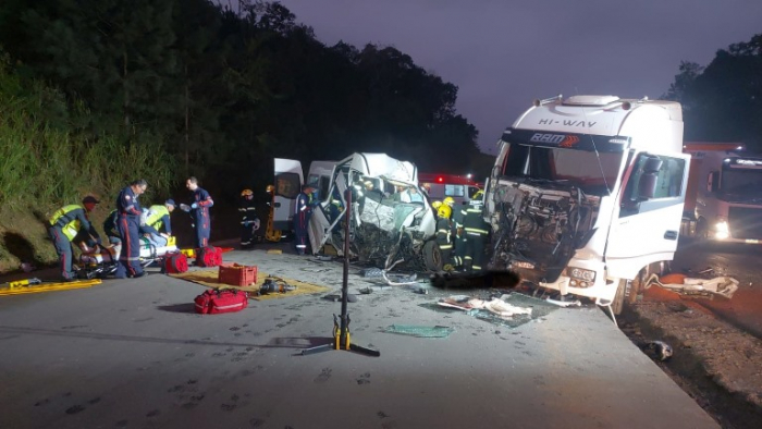 A informação foi confirmada pela Polícia Rodoviária Federal (PRF). O acidente foi uma batida de frente entre um caminhão e um outro veículo. Às 8h30 o trânsito flui alternadamente, no esquema de siga/pare. enquanto.
