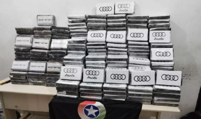 A droga estava embalada em caixas com o selo de uma marca automobilística de luxo.