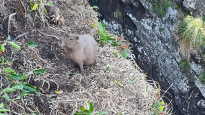Polícia Militar Ambiental (PMA) animal teria caído na última segunda, 14 - Foto: Rodrigo Dalmolin O resgate de uma capivara que caiu em um penhasco na trilha Ponta da Andorinha, no Pântano do Sul, em Florianópolis, precisará ser feito de rapel, de acordo com a Polícia Militar Ambiental (PMA).