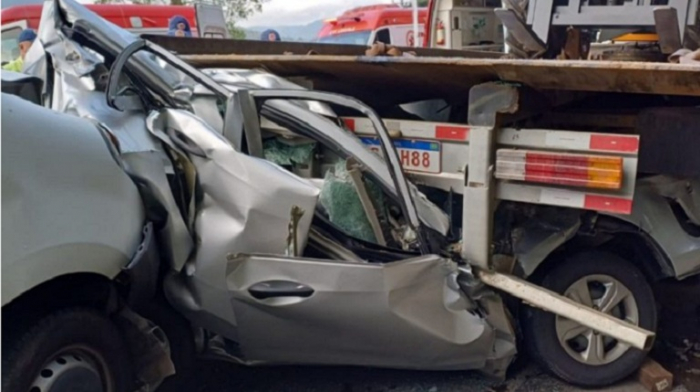 O engavetamento foi registrado por volta das 7h40 da manhã desta sexta-feira, no km 136 da rodovia federal. Segundo a Polícia Rodoviária Federal, a batida envolveu dois caminhões, um furgão e o automóvel.