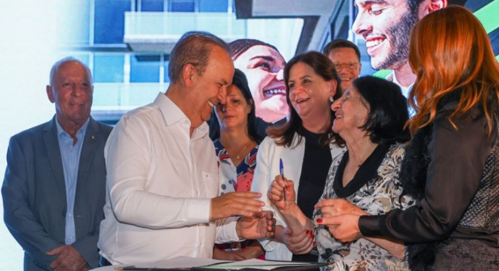 "Esse é o maior programa que Santa Catarina já teve e vai chegar a todas as cidades. Vamos fazer parceria com os prefeitos, pra repassar o dinheiro para a prefeitura e a prefeitura construir a casa dentro do padrão previsto. E também vamos ajudar a pessoa a financiar sua casa própria, com recurso que pode chegar até R$ 20 mil. Porque o aluguel a pessoa já paga, então pagar a prestação vai ser muito melhor e mais barato do que o aluguel”, explicou o governador Jorginho Mello.
