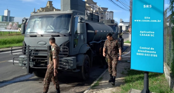 Ao todo, foram enchidos seis caminhões-pipa do 28º Grupo de Artilharia de Campanha do Exército em Criciúma na manhã desta quarta-feira, 08 de maio, com previsão de mais outros três caminhões até a noite.