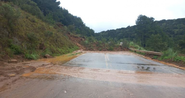 A SC 114, entre Urubici e São Joaquim, na altura do quilômetro 401, está interditada em função de um deslizamento de terra.