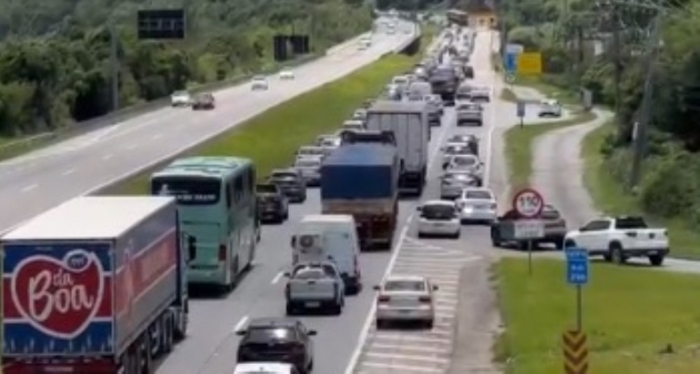 Todo o percurso da rodovia federal que corta a região da Grande Florianópolis um intenso tráfego é registrado.