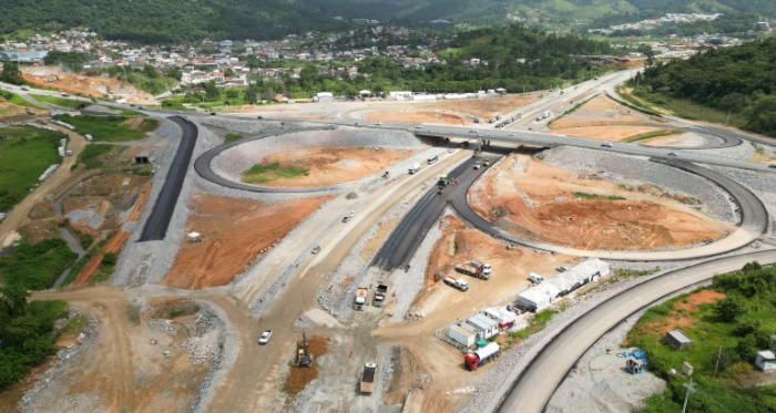 Cruzamento do Contorno com a BR-282 - Foto: Divulgação A Arteris Litoral Sul concluiu no começo de março as obras civis do chamado trecho Sul A do Contorno Rodoviário da Grande Florianópolis. Com isso, as obras do Contorno estão concluídas de Biguaçu ao trevo da BR-282, em Palhoça.
