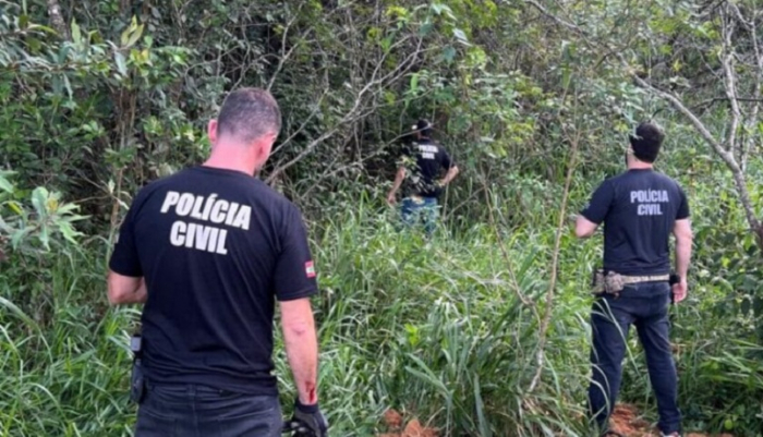 De acordo com a polícia, o cadáver foi encontrado em uma área de mata no Bairro Pedregal, em São José, também na Grande Florianópolis. A equipe da Delegacia de Roubos e Antissequestro da Diretoria Estadual de Investigações Criminais (DEIC) chegou ao local após denúncias de que o casal estaria escondido ali.