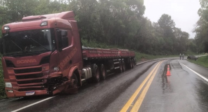As vítimas ainda não foram identificadas - Foto: Divulgação Uma colisão frontal entre um carro e uma carreta resultou na morte de duas pessoas na manhã desta quarta-feira, na BR-280, em Mafra.