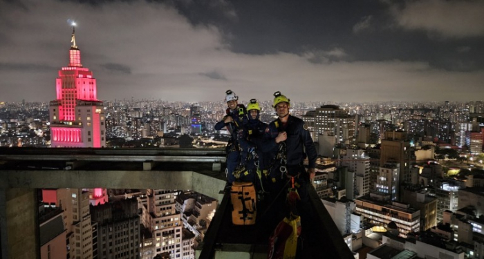 Outro cenário foi uma tirolesa no Viaduto do Chá e por último, uma grua em que foi preciso se deslocar junto ao prédio do Comando-Geral do Corpo de Bombeiros da Polícia Militar do Estado de São Paulo (PMESP).