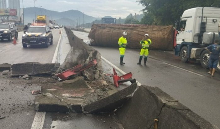 O veículo virou no Km 135, logo depois das 9h e bloqueou as duas faixas. O canteiro central foi atingido e houve reflexo também no sentido Norte, que teve uma das pistas fechadas.