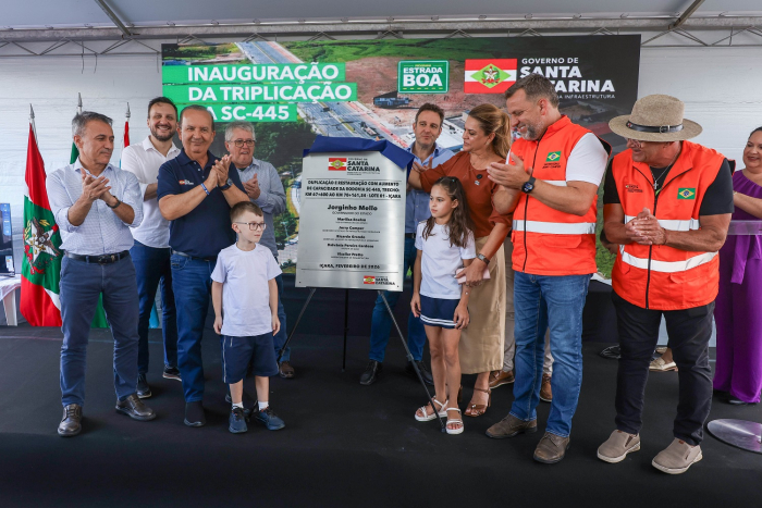 Ato foi realizado em Içara na última segunda, 09 - Foto: Leo Munhoz O governador Jorginho Mello inaugurou nesta segunda-feira, 09 de fevereiro, a obra de triplicação da SC-445, entre a cidade de Içara e a BR-101, no Sul do estado. A melhoria faz parte do programa Estrada Boa, compreende 2,5 quilômetros e custou cerca de R$ 44 milhões.