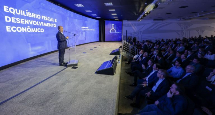 O palestrante convidado pela Fiesc foi o governador de Goiás, Ronaldo Caiado, que falou sobre os desafios do Brasil para manter o equilíbrio fiscal. Durante o encontro, temas relevantes para o desenvolvimento econômico e industrial foram discutidos, fortalecendo a cooperação entre os estados e promovendo a troca de experiências e boas práticas administrativas.