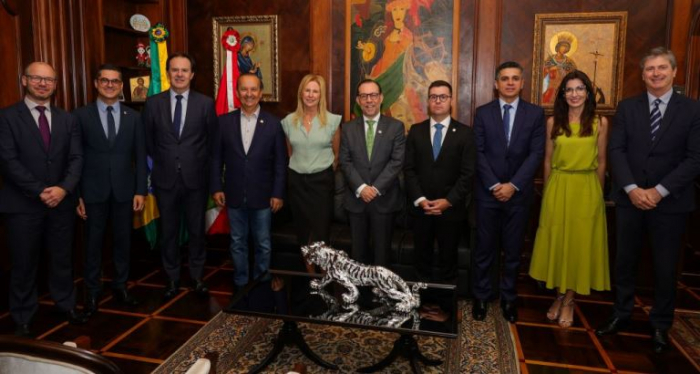 A visita de cortesia dos desembargadores foi realizada nesta sexta, 24 - Foto: Divulgação O governador Jorginho Mello recebeu nesta sexta-feira, 24 de novembro, uma visita de cortesia de desembargadores do Tribunal Regional Federal da 4ª Região (TRF-4).