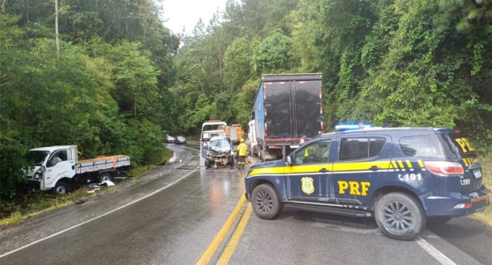 Ocorrência interditou a rodovia por alguns minutos até a finalização do atendimento - Foto: Divulgaçãp Um grave acidente foi registrado no km 45, da BR-282, em Águas Mornas, na Grande Florianópolis, na tarde desta terça-feira, 24 de fevereiro. Segundo a PRF (Polícia Rodoviária Federal), as pistas em ambos os sentidos precisaram ser interditadas para atendimento das vítimas sendo liberadas parcialmente por volta das 16h40.