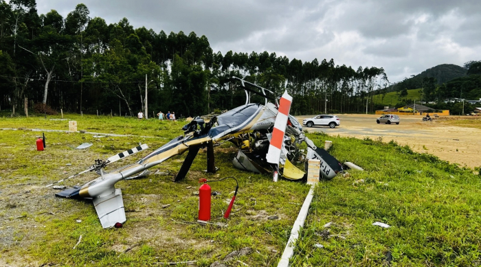 Segundo informações, o acidente ocorreu durante a tentativa de decolagem - Foto: Divulgação Um helicóptero com cinco pessoas a bordo caiu em Penha, por volta das 14h, deste sábado, 04 de janeiro.