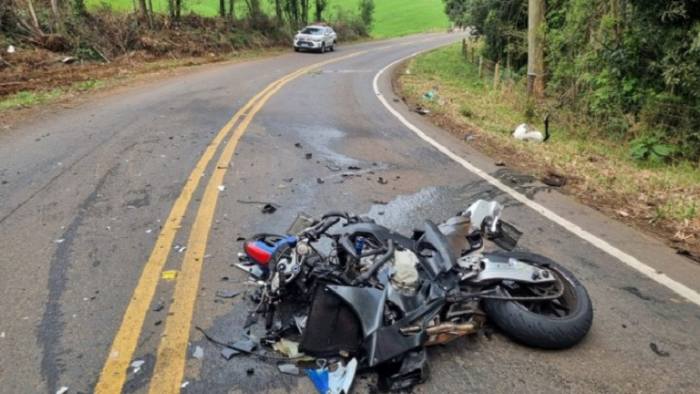A motocicleta BMW S1000 RR teria invadido a pista contrária, segundo a PMRv - Foto: DIvulgação Um motociclista, de 31 anos, morreu após colidir contra um carro na SC-390, em Ipira, no Meio-Oeste de Santa Catarina.