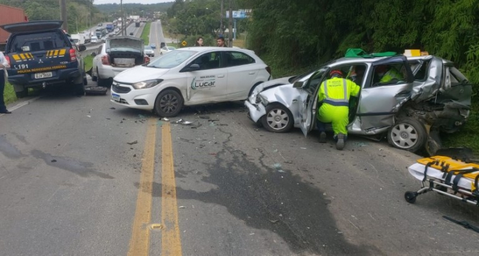 Durante a tentativa de fuga o suspeito provocou um acidente - Foto: Divulgação Na manhã desta terça-feira, 03 de outubro, policiais rodoviários federais apreenderam 202 quilos de maconha durante fiscalização a automóvel em Joinville. Um homem foi preso depois de provocar acidente.