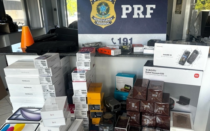 A carga de ambos totalizou 75 smartfones, 14 computadores, seis tablets, nove receptores de TV pirata, mais de 100 perfumes e ainda videogames e robôs aspiradores.