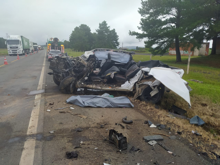 O acidente ocorreu na BR-116 na manhã desta sexta, 12 - Foto: Divulgação Uma colisão frontal violenta resultou na morte de um homem de 32 anos que conduzia uma Toyota Hilux, com placas de Correia Pinto. Ele bateu contra um ônibus, com placas de Lages, cujo motorista sofreu lesões graves na manhã desta sexta-feira, 12 de janeiro, na BR-116, em Correia Pinto.