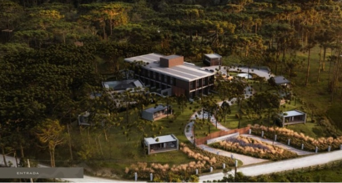 Complexo terá quase cinquenta apartamentos - Foto: Reprodução Um novo resort de luxo será construído na Serra catarinense. O Colinas de Urubici vai ocupar um terreno de 20 mil metros quadrados na cidade homônima, uma das mais frias do Estado, e terá quase 6 mil metros quadrados de área construída.