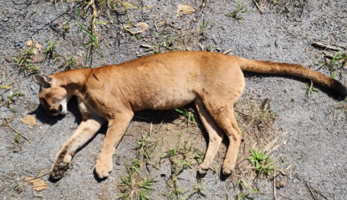 Animal foi recolhido e será encaminhado para uso científico - Foto: PMRv Uma onça-parda, animal também conhecido popularmente como leão-baio e suçuarana, morreu atropelada na manhã desta quinta-feira, 17 de abril.