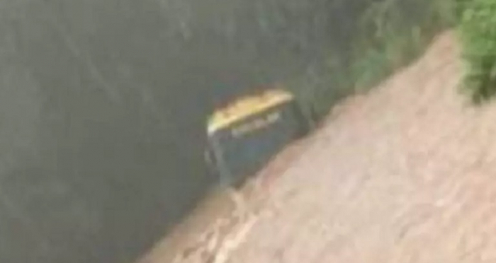 Cinco crianças estavam no veículo escolar no momento que ele foi levado pelas águas no Distrito de Alto Alegre, no interior da cidade. De acordo com informações da Rádio Capinzal, as crianças conseguiram sair do veículo.