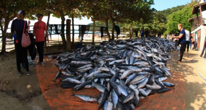 Comunidade auxiliou pescadores a retirar a rede que cercou o cardume