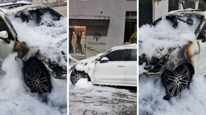 Quando o incêndio foi controlado, o Porsche passou por uma inspeção e não havia ninguém dentro nem produtos que pudessem fazer o fogo voltar.