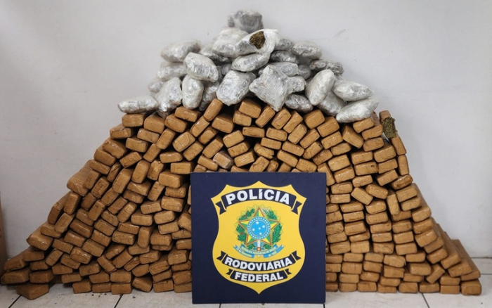 Dois homens foram presos - Foto: Divulgação Policiais rodoviários federais apreenderam na tarde desta segunda-feira, 14 de abril, em Joinville, 160 quilos de maconha e 11 quilos de skunk.