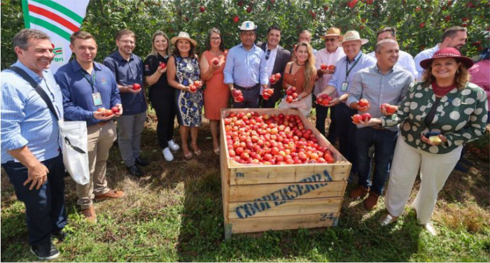 Aproximadamente 84% da produção tem origem na Serra Catarinense, onde 2.676 pomicultores cultivam a fruta - Foto: Wagner Urbano/Divulgação São Joaquim, reconhecido município polo produtor de maçã no Brasil, deu início, oficialmente, à safra nacional 2023/2024 sábado, 24 de fevereiro, em evento realizado no Parque Nacional da Maçã.